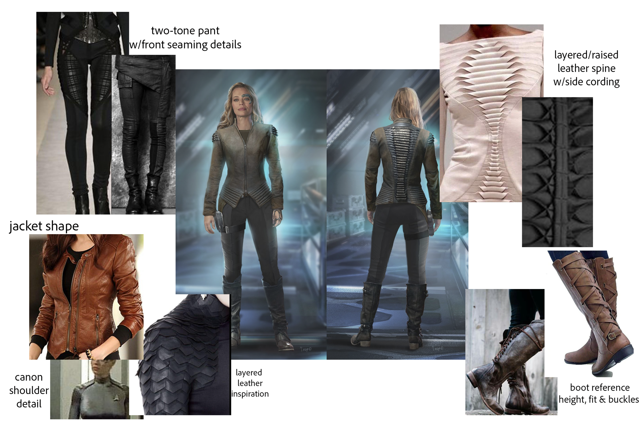 To move forward, we had to first look back at all of the Seven of Nine costumes from previous Star Trek series to refamiliarize ourselves with her aesthetic and begin brainstorming how we could tie in past characteristics with our new design.