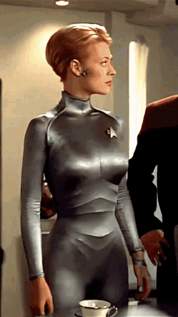 Her most iconic look from Voyager was this silver jumpsuit, designed by Robert Blackman. The actress found it to be uncomfortable and movement restrictive.